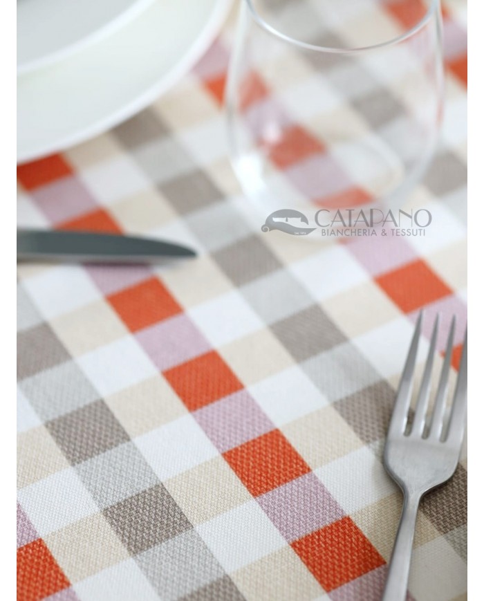 Tovaglia realizzata in puro cotone con vivace stampa a fantasia.